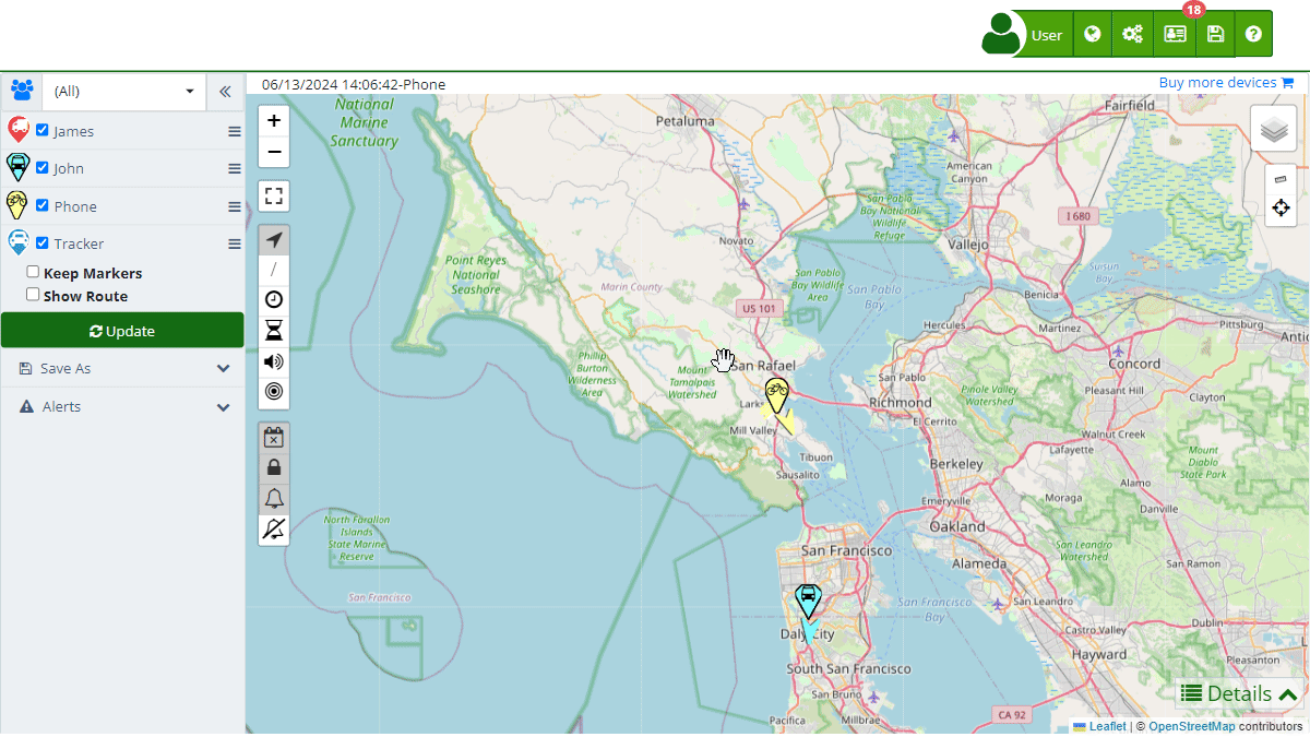 - Select the desired group in the map filter to view only the devices that belong to that group.