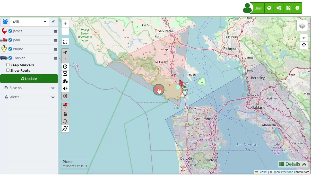 - Manage Alerts: Click " Alerts" to configure or edit alerts. Here you can set parameters to receive notifications about specific events and manage geofences to enhance security and monitoring.