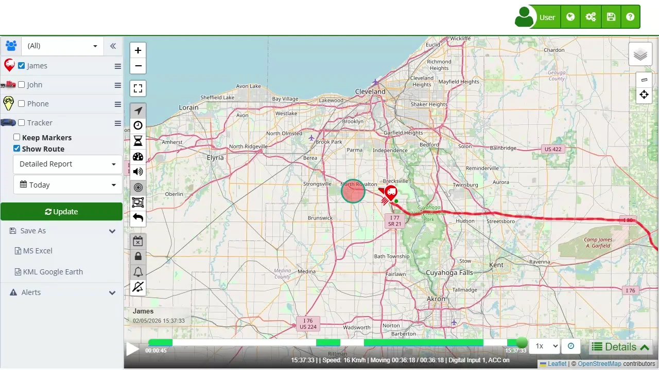 - Show trip: Check the "Show trip" option, choose the time period you want to see and then click the " Update" button to see the route on the map.
