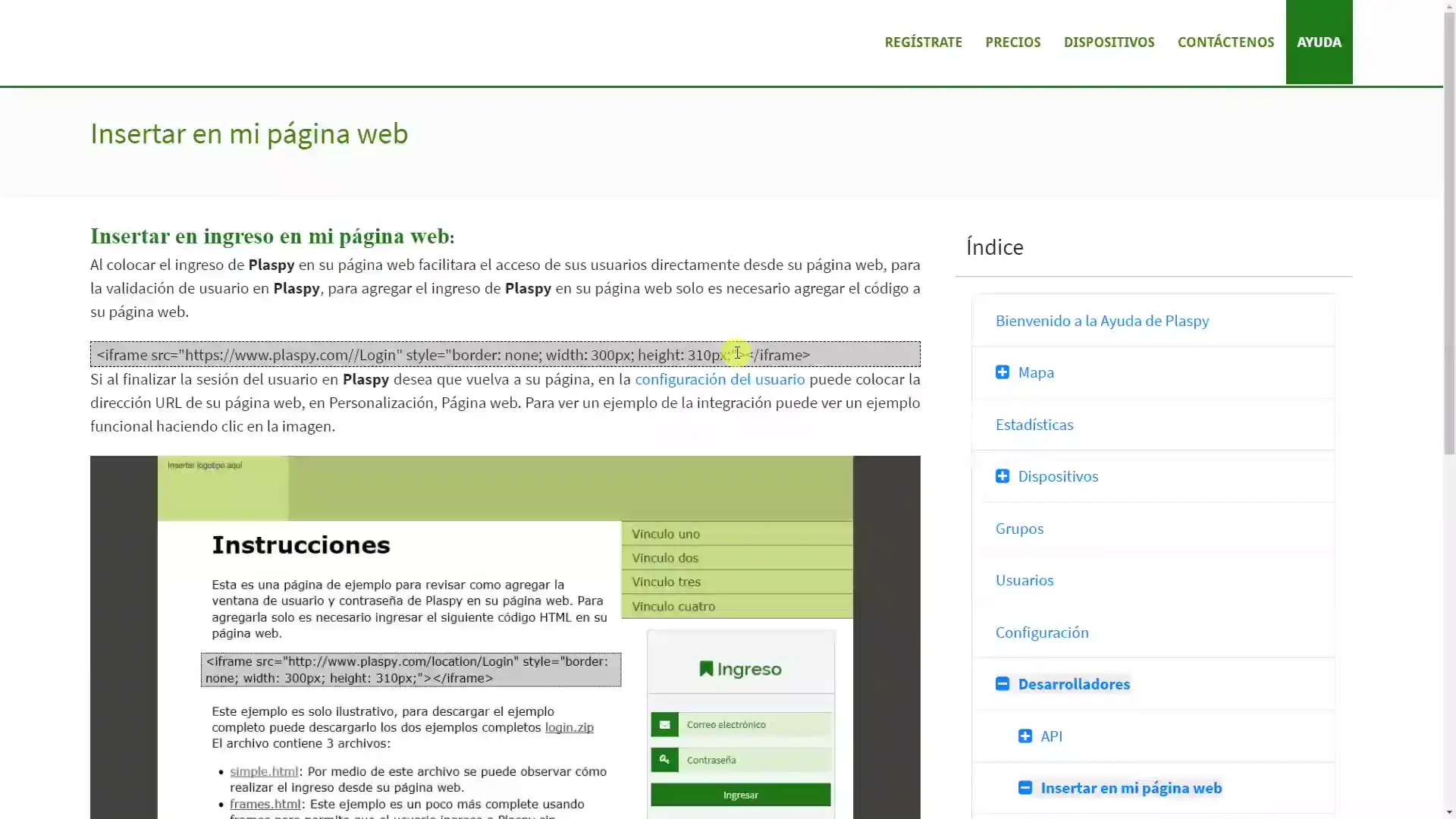 Instrucciones para insertar el iframe