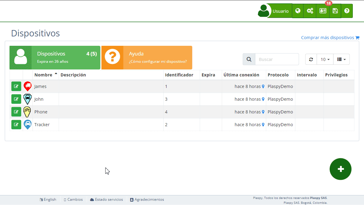 - Navega a la sección " Dispositivos" desde el panel superior derecho pinchando en "".
