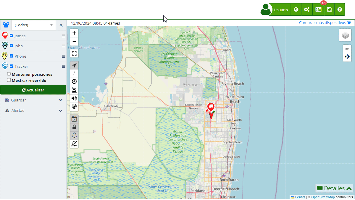 - Filtrar en el Mapa: Ver únicamente los dispositivos que pertenecen a un grupo específico en el mapa, facilitando la visualización y el monitoreo.