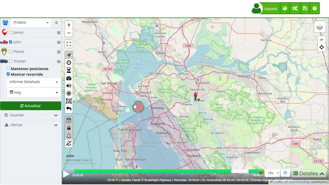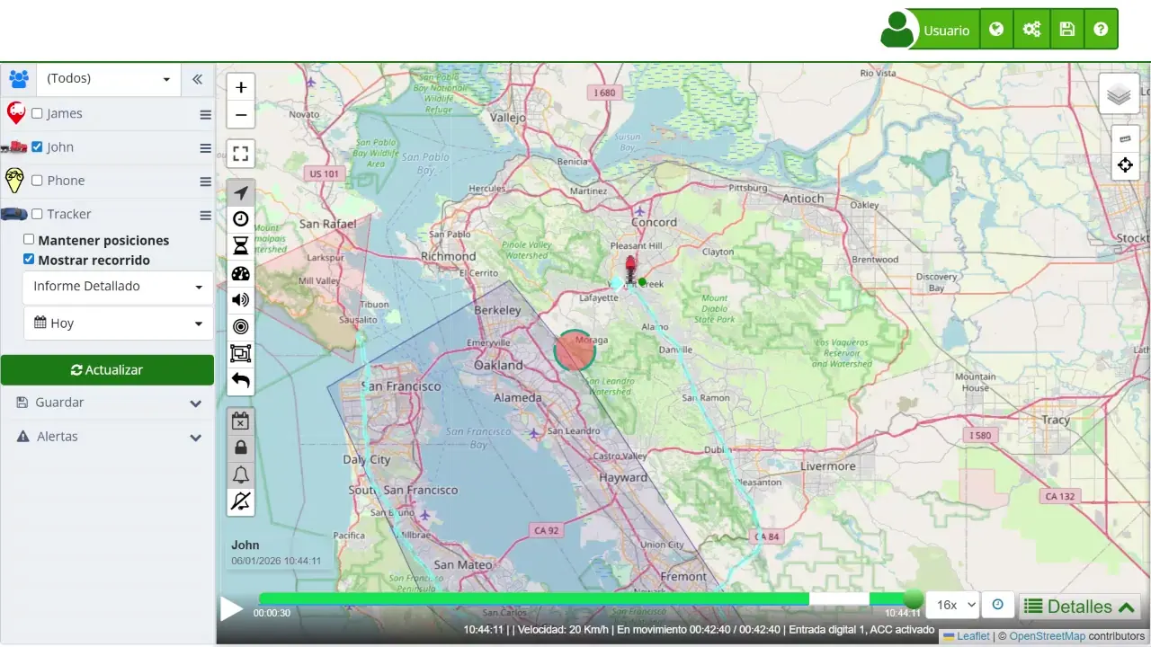 Siguiendo estos pasos y utilizando los controles de reproducción, podrá monitorear y analizar eficazmente el historial de movimientos de sus dispositivos dentro de la plataforma. Esta funcionalidad es especialmente beneficiosa para la gestión de flotas, el seguimiento logístico y la garantía de seguridad y eficiencia en sus operaciones.